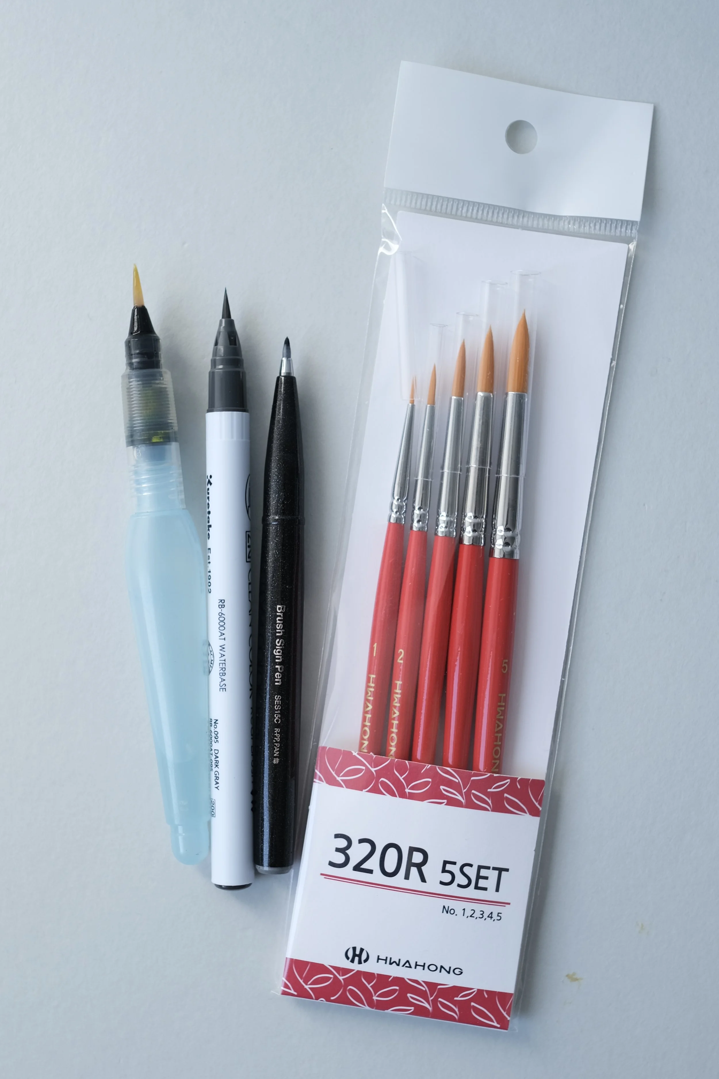 市面上的軟筆刷如今百百種,我精選了三款對我影響至深的筆種與大家分享:柔繪筆、Pentel水筆和水彩筆。