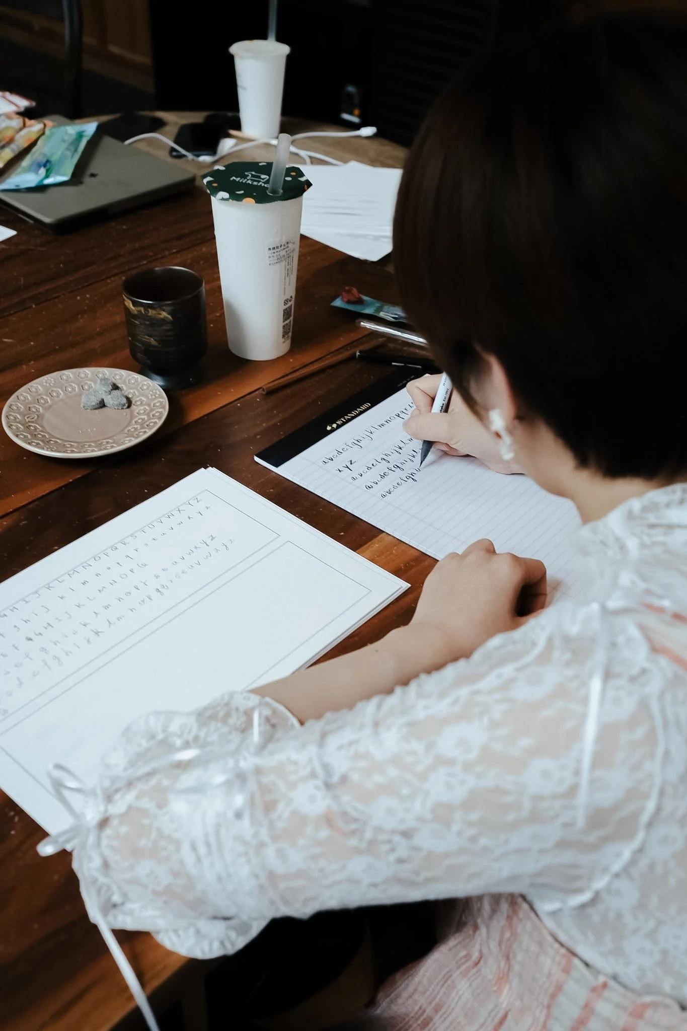工作坊的最後,是讓大家自由創作的時光,現場可以與我討論想要的創作提案或做更深度的嘗試,慢慢完成屬於自己的作品;這可以是單純寫下自己的名字、簡單的抄句,也可以是一場想像力的實現。