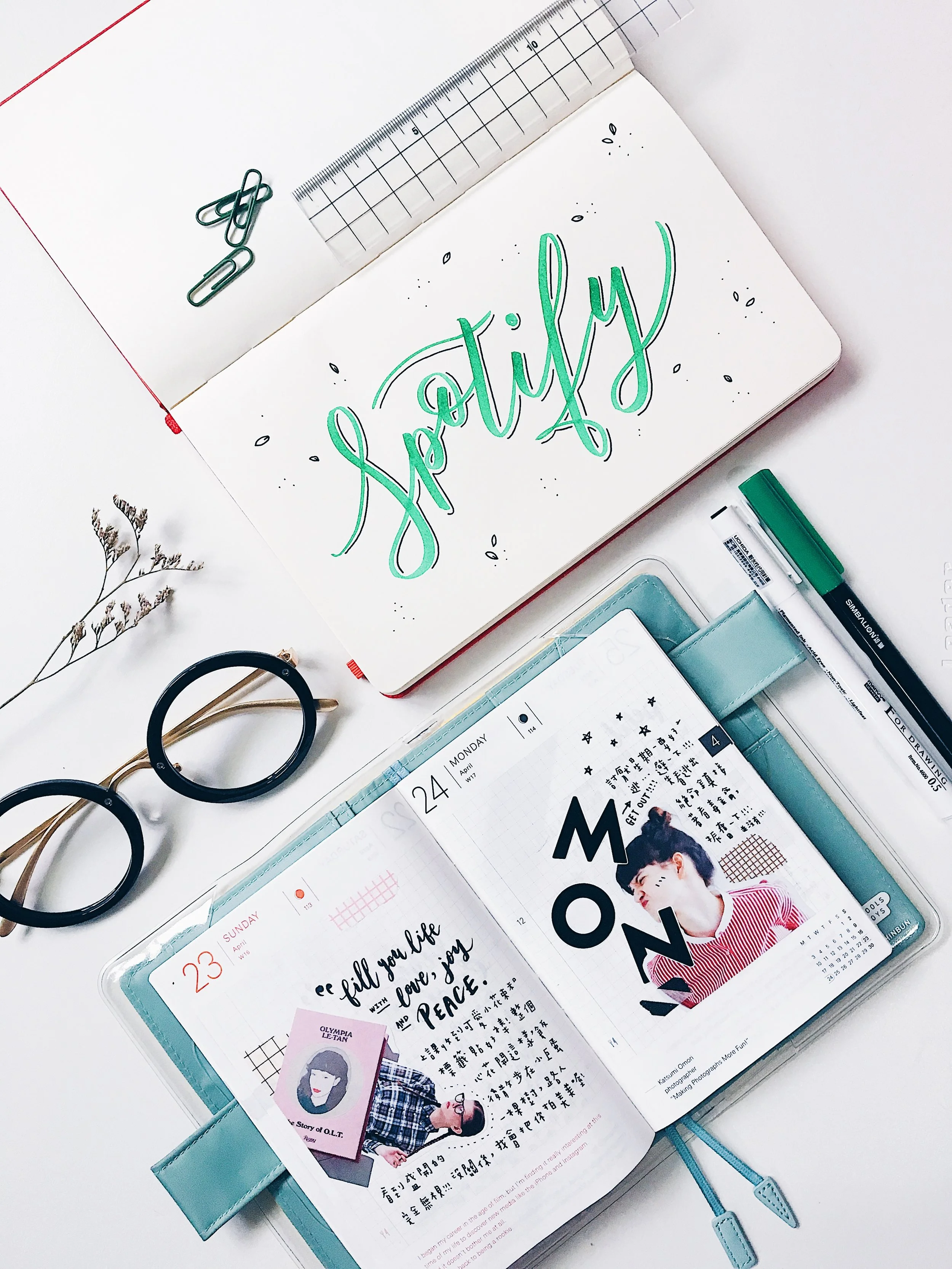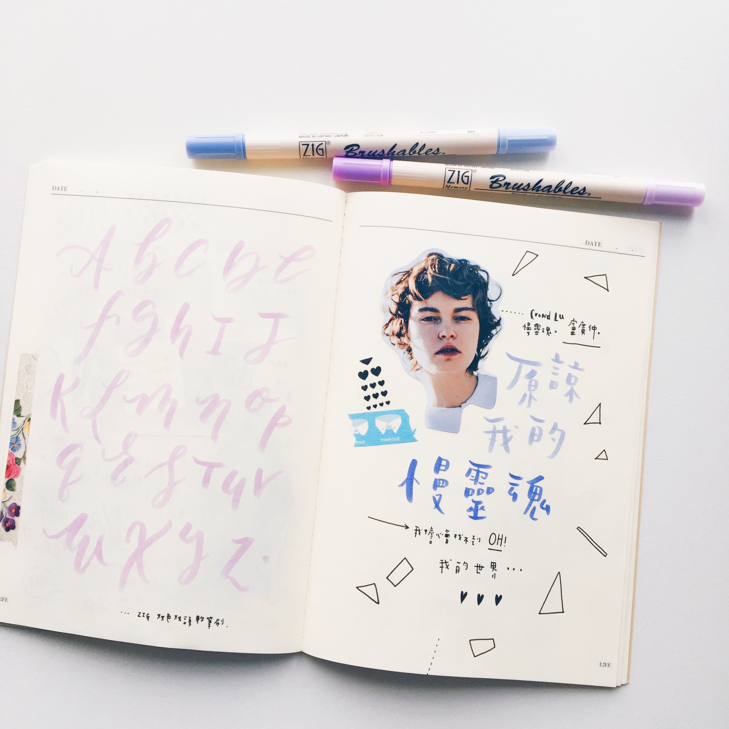 接觸英文書法則是小時候在補習班,問了老師一些書寫體的寫法,對於可以把英文字連在一起覺得非常的酷炫啊!加上自己小時候練了很久的書法,對於英文字體較為自由奔放的感覺非常羨慕,一直到了高中跟大學才開始慢慢有更深一層的接觸,但畢業出社會以後,有一段時間其實就沒有寫手帳了,我想原因應該跟大家都差不多,工作很累就懶得再去碰這些寫字的事,不過當心裏累積的情緒到了一個交界點以後,頭腦好像就會自動自發地催促自己去寫些什麼宣洩出來。不管是對寫字或是對手帳的渴望都是,所以我又開始拿起筆,慢慢紀錄每天發生的瑣事,一直到現在都沒停過。