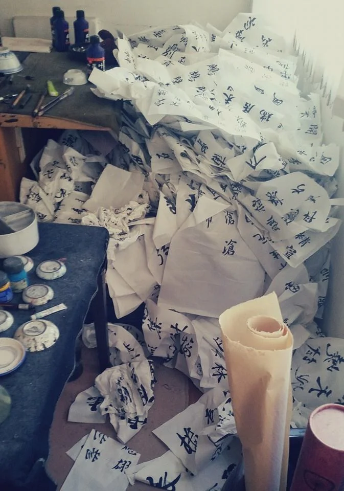 Daphne: Because of work, I need to be really good at utilizing segments of time. For example, if I need to wait long-ish for a file to be saved, I would take this time and quickly doodle a few words in my sketchbook, and it totally looks like I'm working extra hard! Also, I would try to make use of lunch break by quickly finishing lunch, and then go hide in the storage room where I practice writing or record short videos of me doing it. After getting home from work, I would pull out the files of my side-freelance gigs and start working on them. Weekends are also werk, werk, werk. Usually it's the only time I have for workshops, or on site calligraphy such as the ones I did with Burberry this year.
