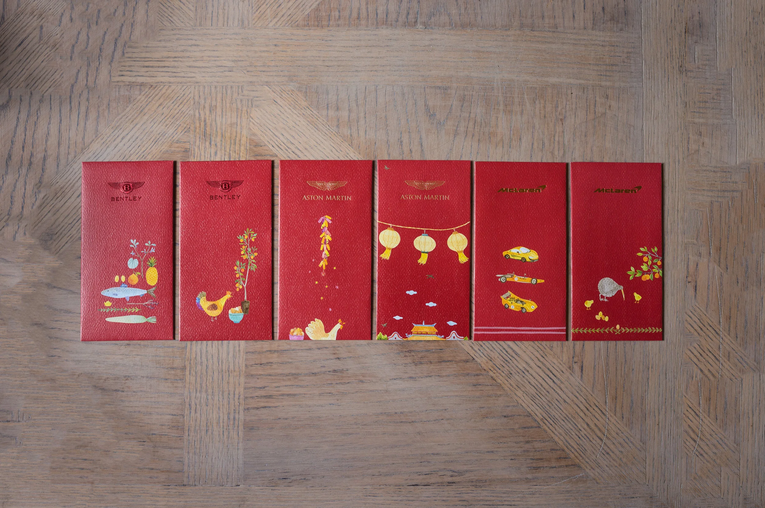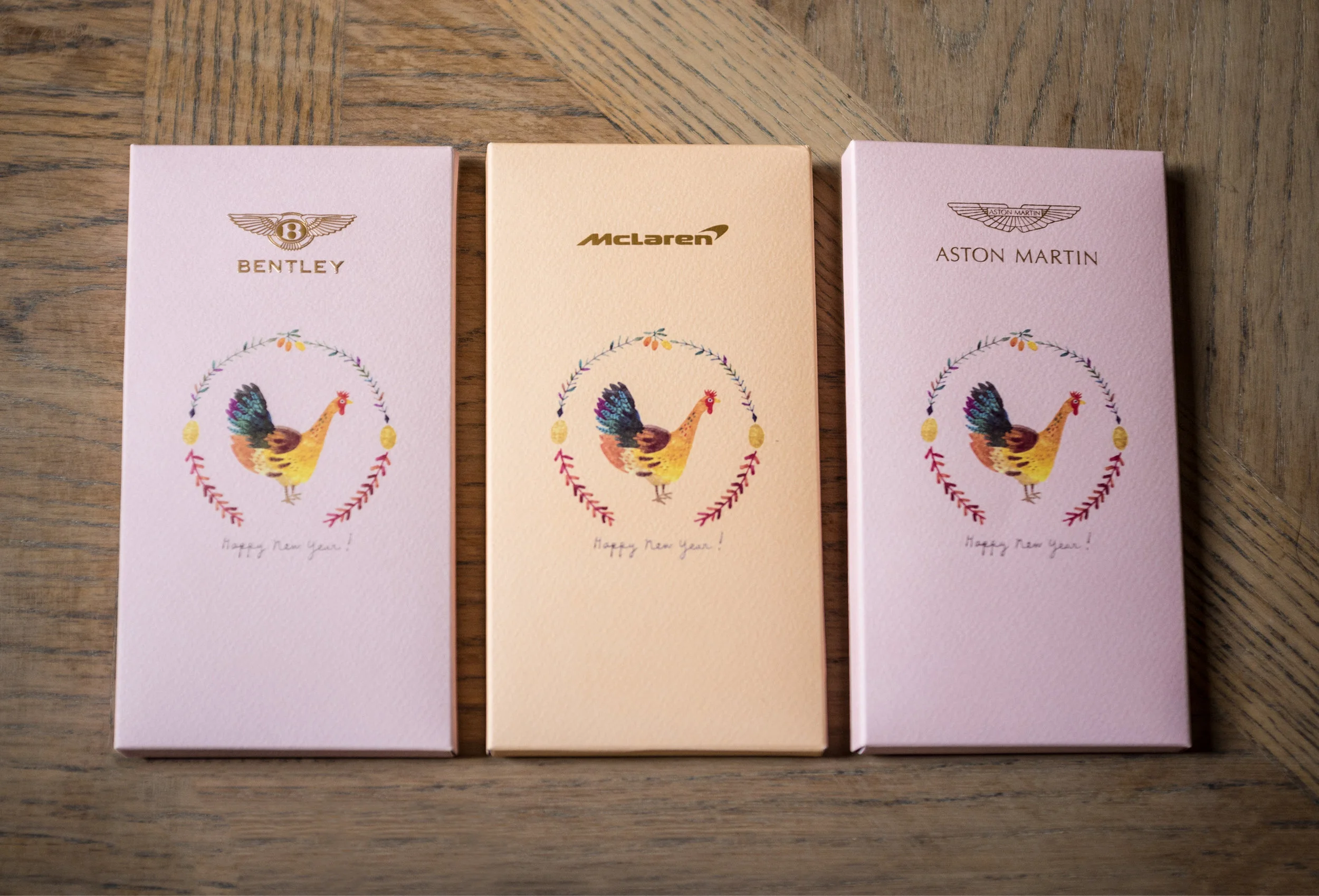 (上下圖)2017舒皮與ASTON MARTIN, BENTLEY, McLaren合作的紅包袋們