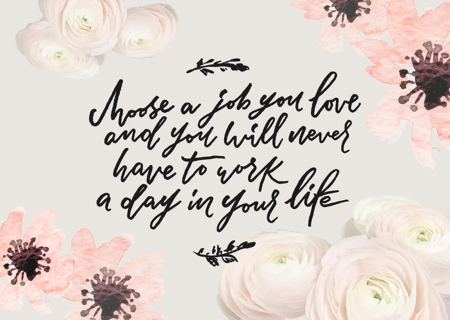 "Choose a job you love, and you will never have to work a day in your life"「選擇一份你熱愛的工作,如此一來你就不是在工作了」