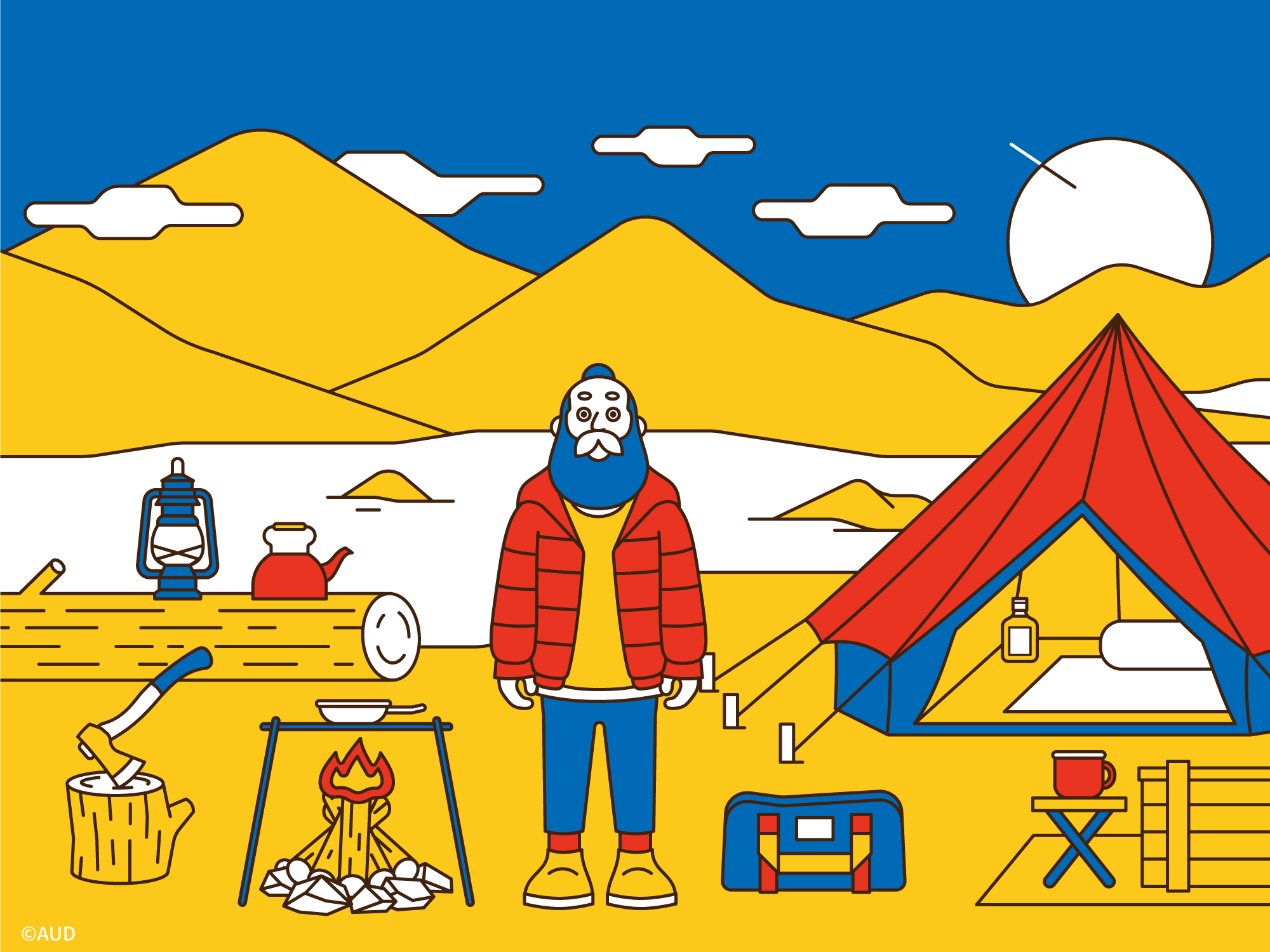 會認識AUD的志恆,是透過NoodleMaker的介紹。當初訪談Noodle的時候,他正與AUD合作一宗品牌識別的案件,於是向我介紹了當時就坐在他旁邊的這位插畫家。第一次進去AUD的粉專時,覺得他是個非常神秘的角色,插畫的風格及用色鮮明,但自我介紹欄卻只寫了一句「幽默森林拾荒者」,瞬間覺得這一切太引人入勝了。直到某次短暫在台灣停留的時候,有幸認識了本人,才發現他的人,就是他筆下的角色:留著鬍子、有些害羞、不多話,但由裡而外透露著一股隨時開口就能一語中地的幽默氣質。