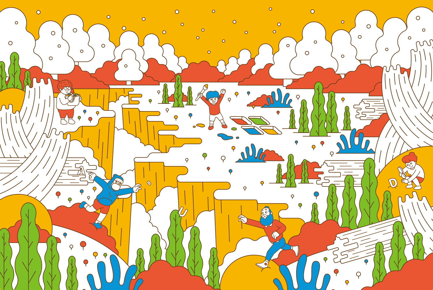 AUdience is a freelance illustrator based in Taipei, Taiwan. He has worked with major clients in Taiwan like Microsoft Taiwan, and is known for his vibrant use of colors as well as his humorous self-projection in the characters. Some of the most famous characters he has created includes the blue bearded lumberjack, and fat cat Wen-Wen (Wen meaning "kiss" in Chinese). You can see more of his work here on Facebook, Instagram, or Behance.